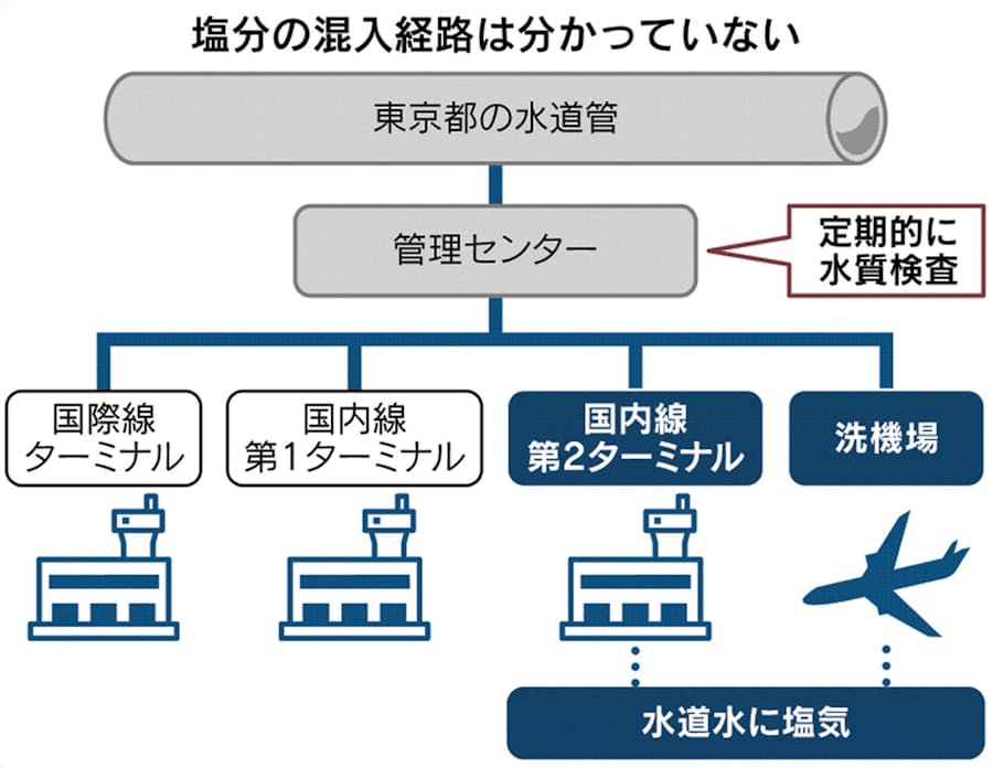 羽田空港の給水トラブル 水道水に塩分、とけぬ謎 - 日本経済新聞