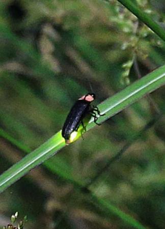 葉の上で明滅するゲンジボタル=上郡町尾長谷