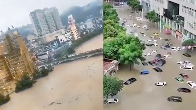 ด้านซินหัวรายงานว่า ฝนที่ตกหนักอย่างต่อเนื่องส่งผลกระทบให้แม่น้ำชิงเจียงในพื้นที่ของแคว้นปกครองตนเองเอินซือกลุ่มชาติพันธุ์ถู่เจียและเหมียว มณฑลหูเป่ย มีปริมาณน้ำล้นเขื่อน พื้นที่ส่วนใหญ่ในเขตเมืองถูกน้ำท่วมมิด ถนนบางช่วงมีปริมาณน้ำสะสมลึกหลายเมตร