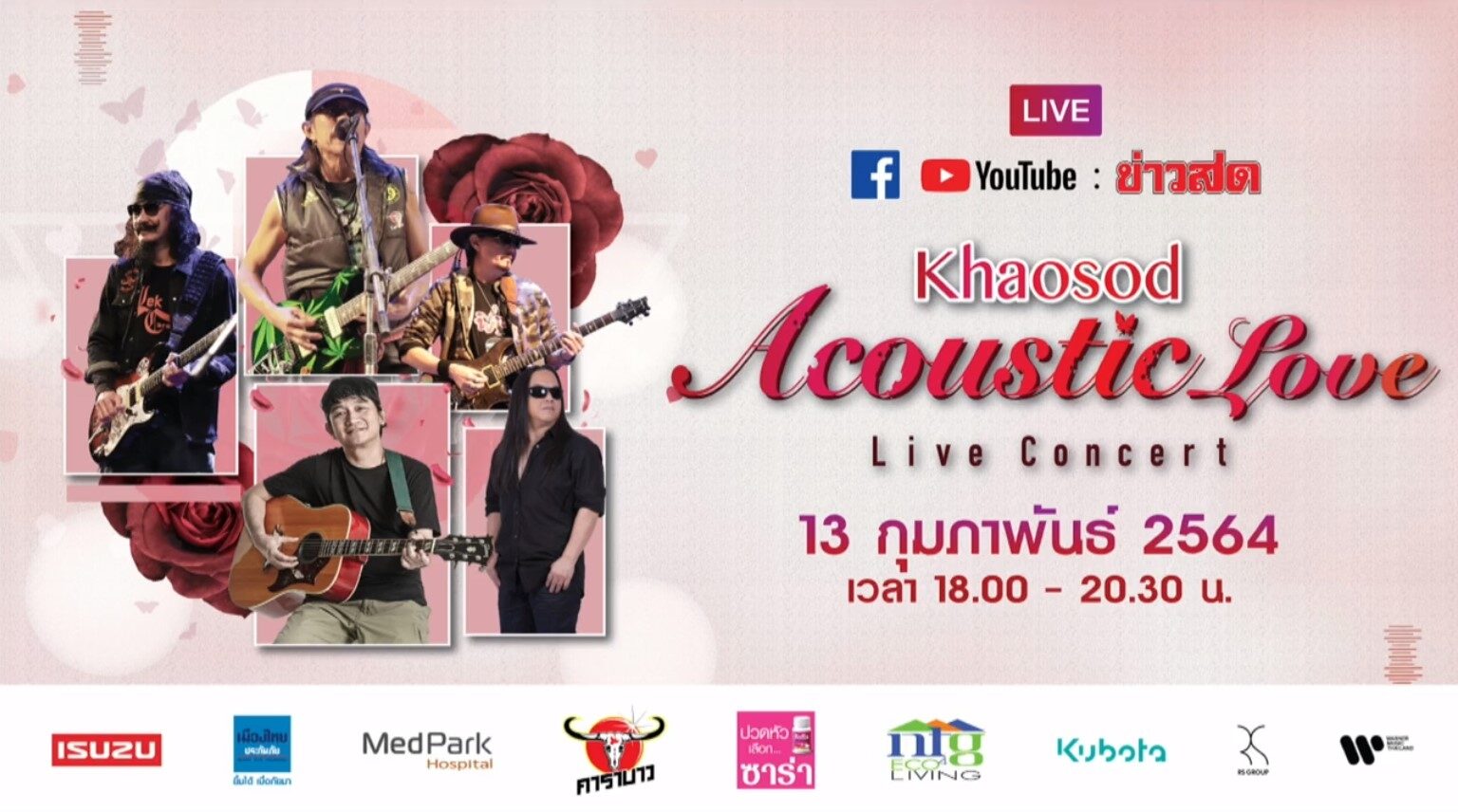 ผู้สื่อข่าวรายงานว่า Khaosod Acoustic Love Live Concert เริ่มขึ้นตั้งแต่เวลา 18.00 – 20.30 น. โดยมีศิลปินนักร้องระดับตำนาน เล่นกันสดๆ จากห้องประชุมข่าวสด นำโดยตำนานเพลงเพื่อชีวิต 3 ขุนพล แอ๊ด ยืนยง โอภากุล, เล็ก ปรีชา ชนะภัย, เทียรี่ เมฆวัฒนา เจ้าพ่อเพลงรักเพื่อชีวิต ปู พงษ์สิทธิ์ คำภีร์ และตำนานศิลปินร็อกคนสำคัญ โป่ง หินเหล็กไฟ หรือ ปฐมพงศ์ สมบัติพิบูลย์ ที่บรรเลงและขับร้องในรูปแบบอะคูสติก