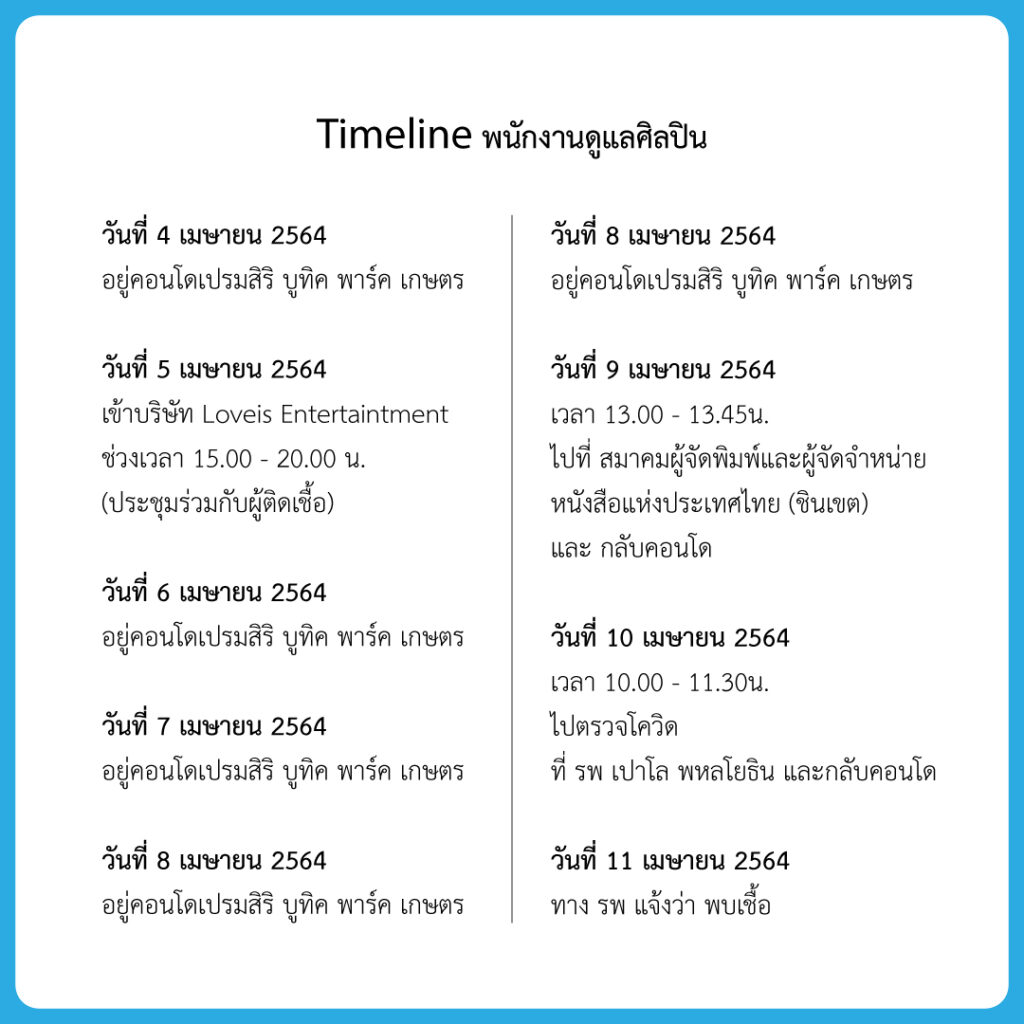 ค่ายเพลงเลิฟอีสสะเทือน หลังจากที่ นนท์ ธนนท์ จำเริญ ประกาศติดเชื้อโควิด-19 ไปเมื่อวานนี้ หลังจากเข้าประชุมที่บริษัท และมีผู้ติดเชื้อเข้าร่วมประชุมในครั้งนี้ด้วย ล่าสุดวันนี้ บริษัทเลิฟอีส ได้ออกประกาศเพิ่มเติม ว่ามีผู้ติดเชื้อเพิ่มอีก 3 คน เป็นศิลปิน 2 คน คือ โปเต้ นักร้องนำ วง MEAN แจ้งไทม์ไลน์เดินทางหลายที่ ส่วนอีกคนคือ นักร้องหนุ่ม เจมส์ อลิน วี หรือ อลิน วี แจ้งไทม์ไลน์ไม่รู้ติดจากที่ไหน และ พนักงานของบริษัทอีก 1 คน โดยมีรายละเอียดดังต่อไปนี้
